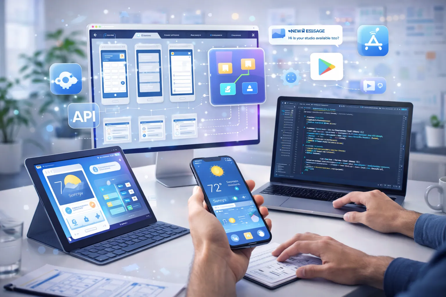 We leverage React Native and Flutter for cross-platform efficiency. Backend services are powered by scalable APIs and cloud infrastructure. Deployment processes ensure smooth publishing to the App Store and Play Store.